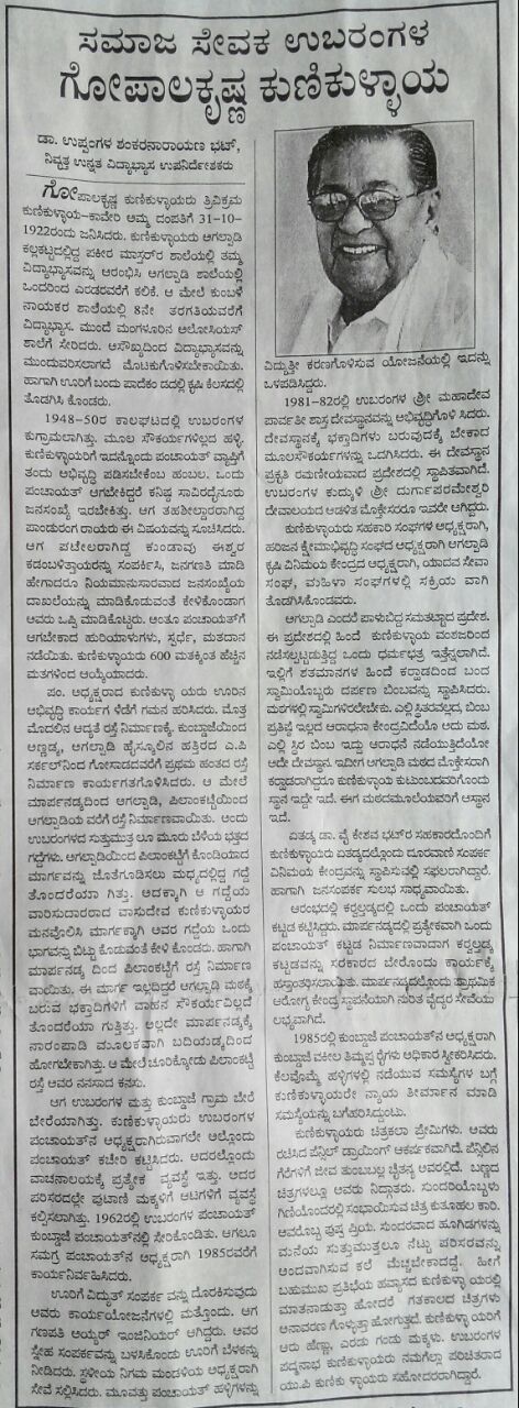 Ubrangala Gopalakrishna Kunikullaya (Late)